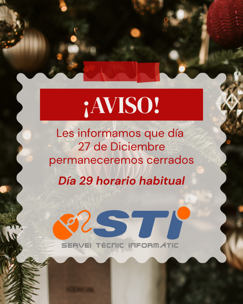 ¡¡AVISO HORARIO NAVIDAD!!